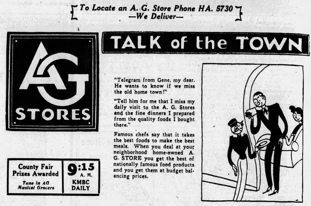 A-G Musical Grocers Ad, July 7, 1934 On July 14, 2024May 29, 2024 By Ryan EllettIn UncategorizedLeave a comment