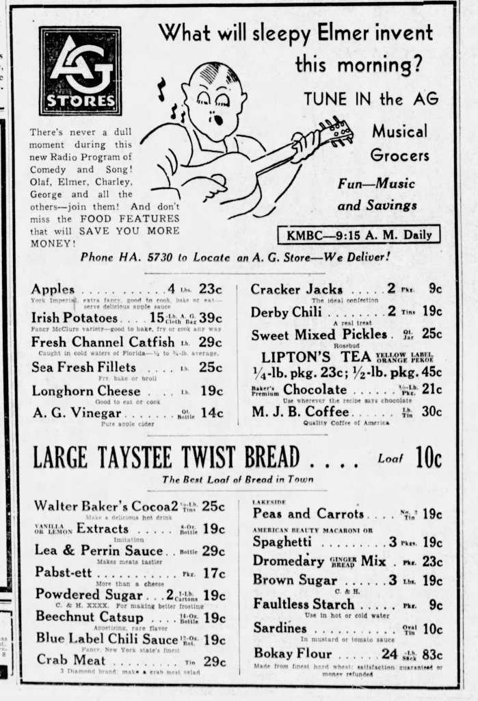 A-G Musical Grocers Ad, April 13, 1934 On June 2, 2024May 28, 2024 By Ryan EllettIn Uncategorized Share this: Click to share on X (Opens in new window) X Click to share on Facebook (Opens in new window) Facebook Like Loading... Related