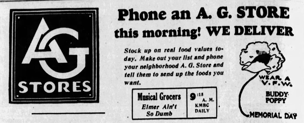 A-G Musical Grocers Ad, May 26, 1934 On June 15, 2024May 28, 2024 By Ryan EllettIn Uncategorized Share this: Click to share on X (Opens in new window) X Click to share on Facebook (Opens in new window) Facebook Like Loading... Related